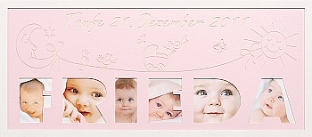Die aus der Holzplatte ausgeschnittenen GROSSBUCHSTABEN (zwei Namen) hinterlegen Sie mit Fotos(10x15).